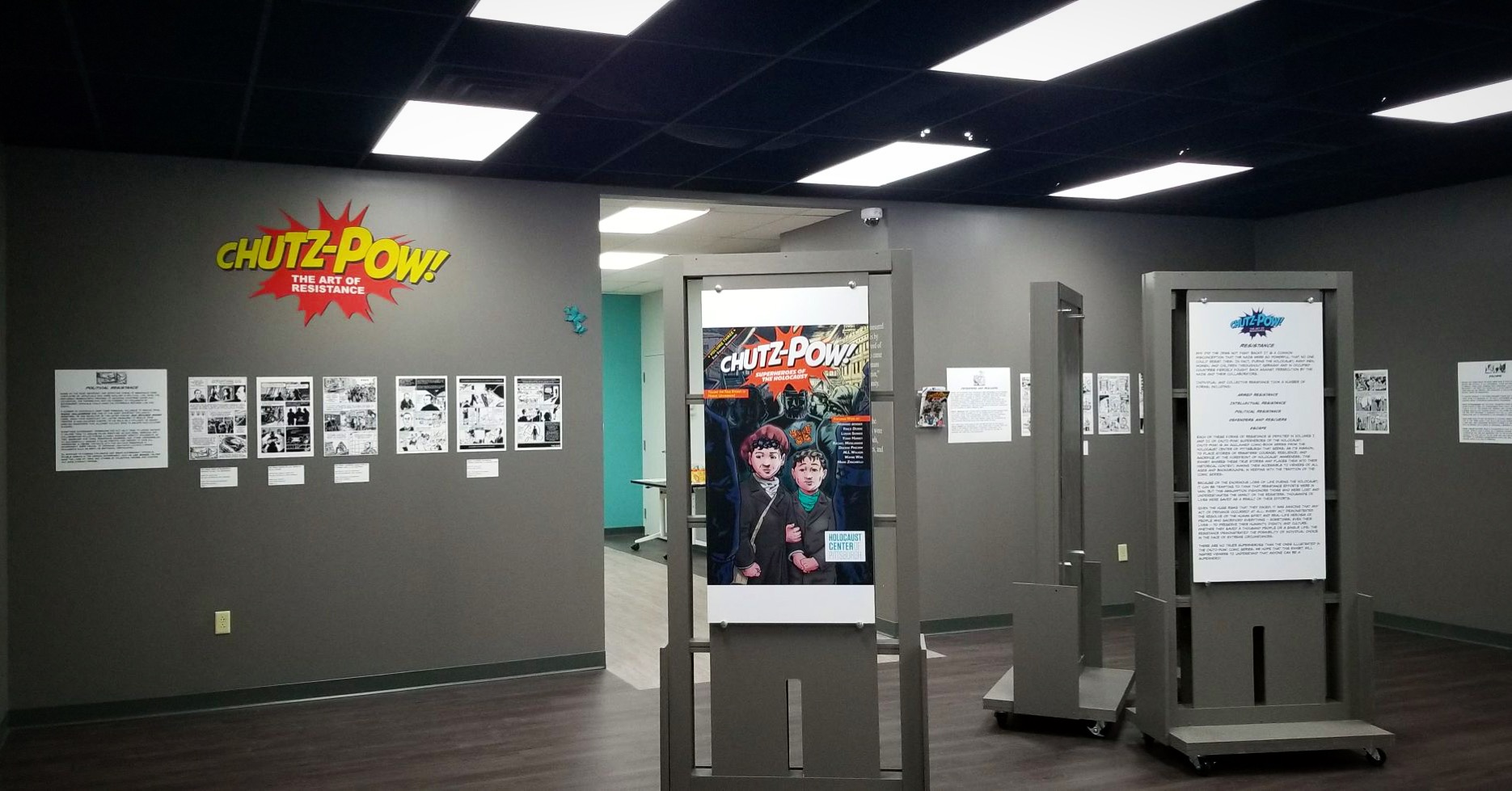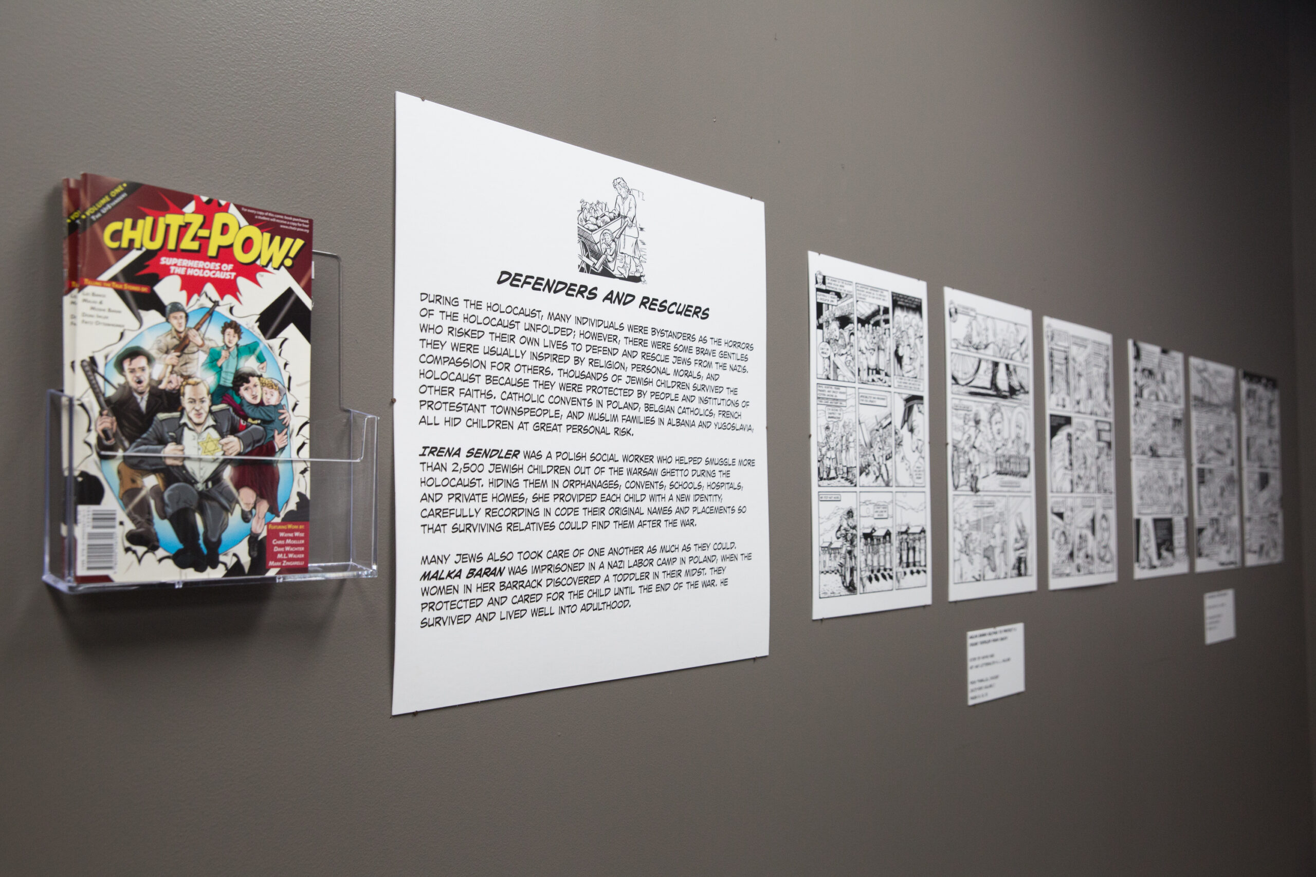 CHUTZ-POW! The Art of Resistance is an exhibit that dispels the misconception that little was done to resist the Nazis during the Holocaust, as well as the idea that only armed resistance was effective. It displays highlights from CHUTZ-POW! Volumes I and II, specifically focusing on examples of different kinds of resistance that the superheroes displayed.